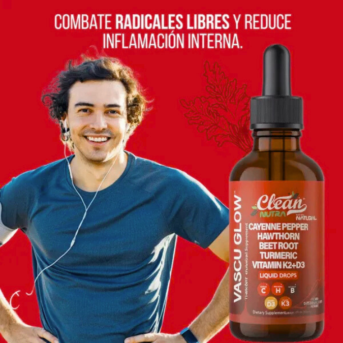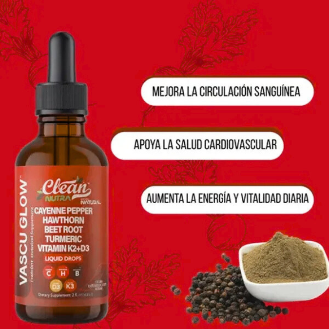 Mejora tu circulación y bienestar diario con Vascu Glow, un suplemento natural en gotas, fácil de consumir y pensado para acompañarte todos los días.